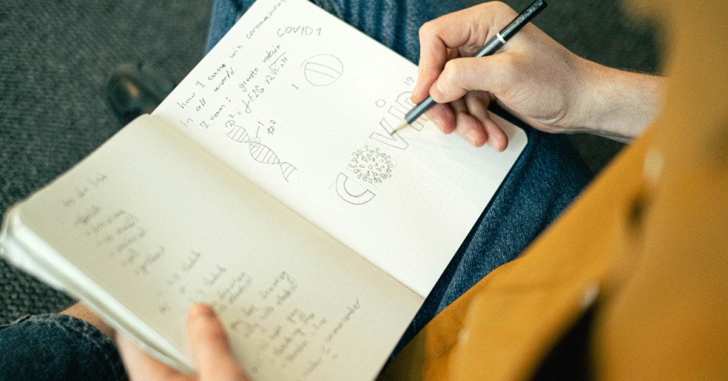 ①頭に浮かんでくる言葉や感情を紙に書き出す