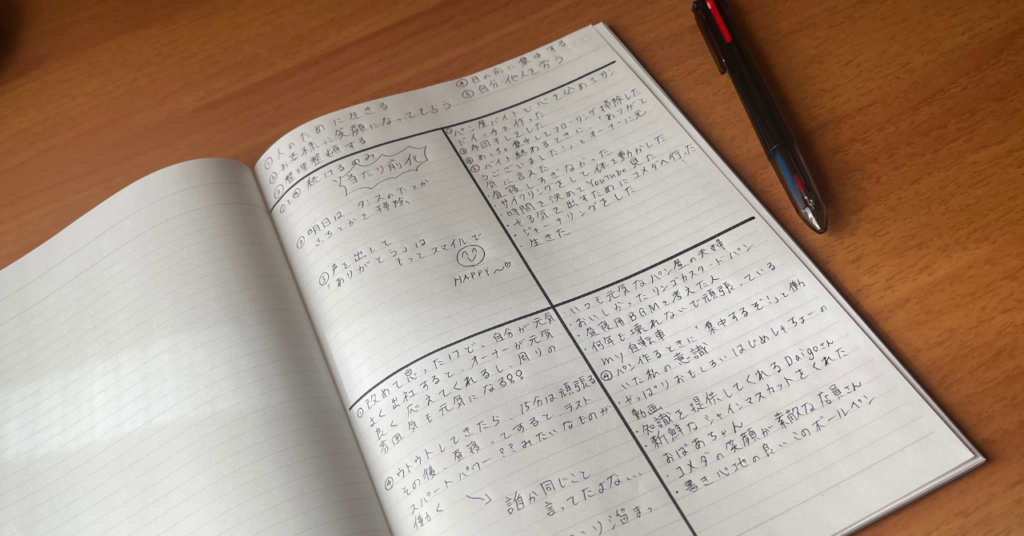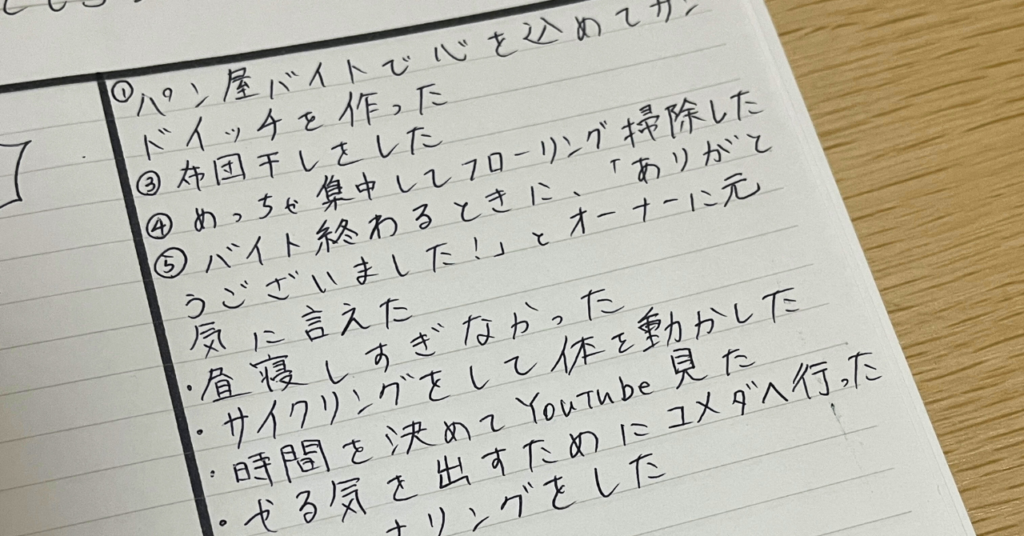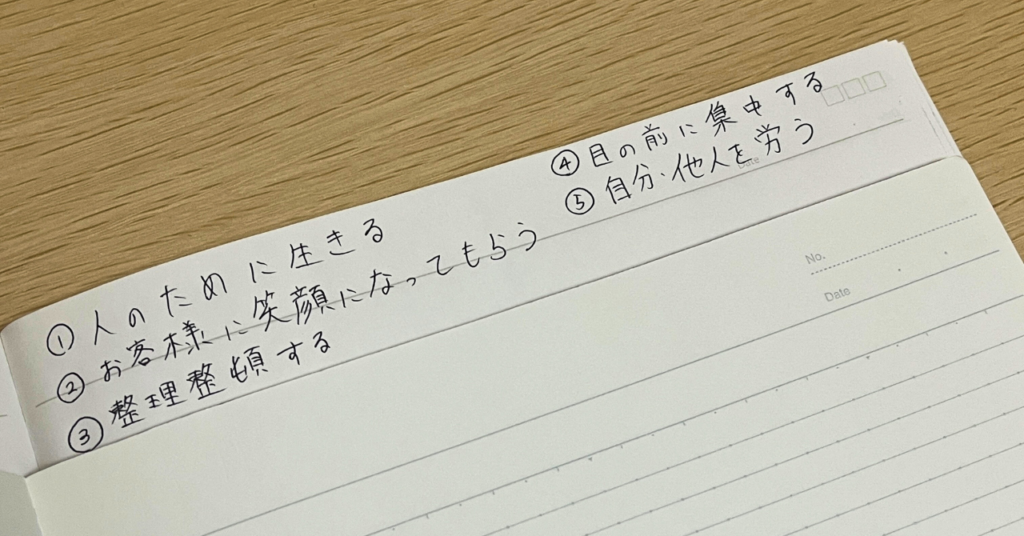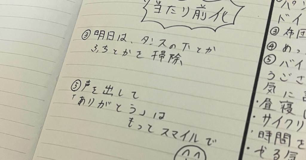 ・直したいところ → 「整理整頓する、目の前に集中する、自分・他人を労う」